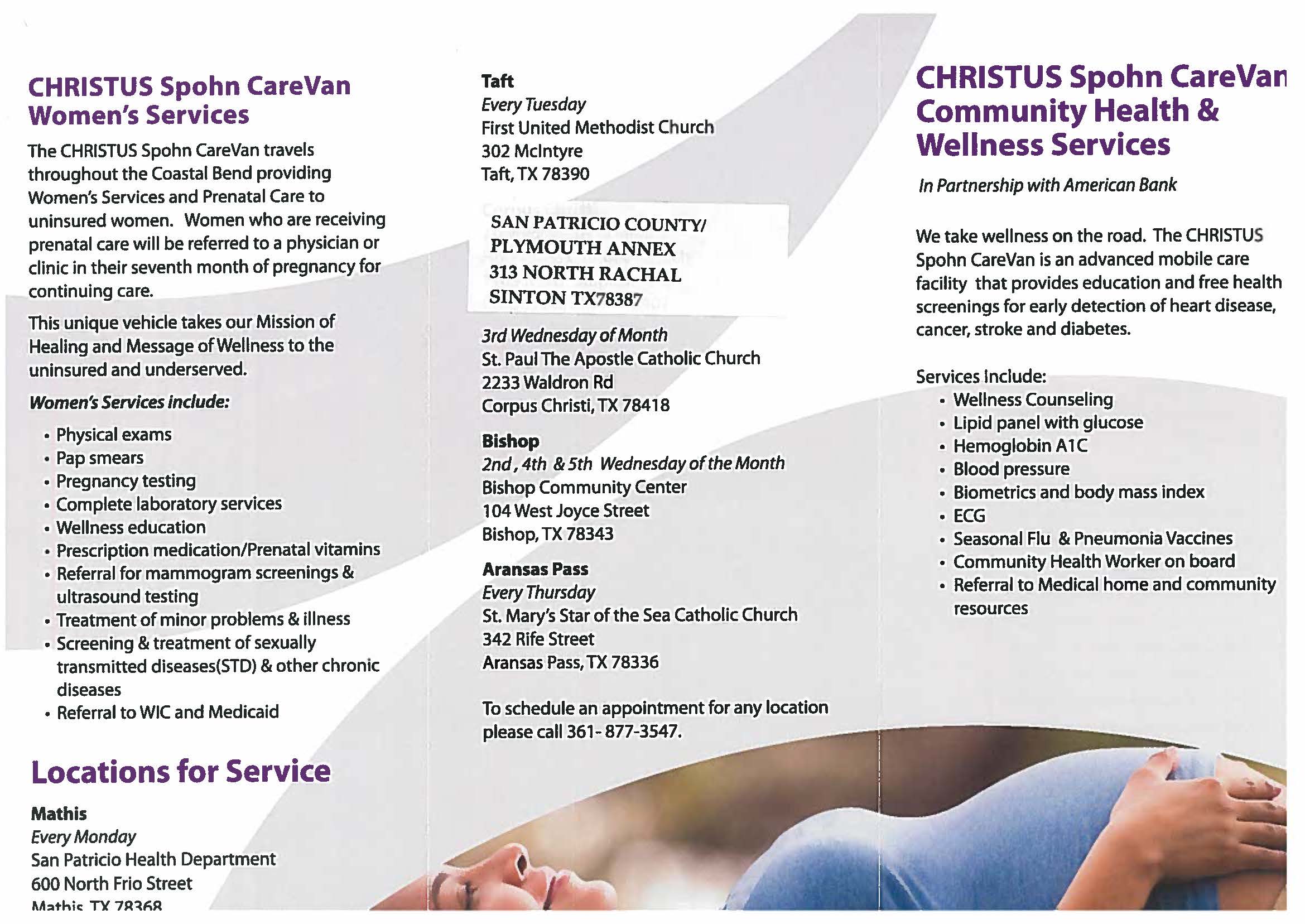 Free Care Van Women’s Services located at 714 E Concho (church parking lot today) see brochure for other locations