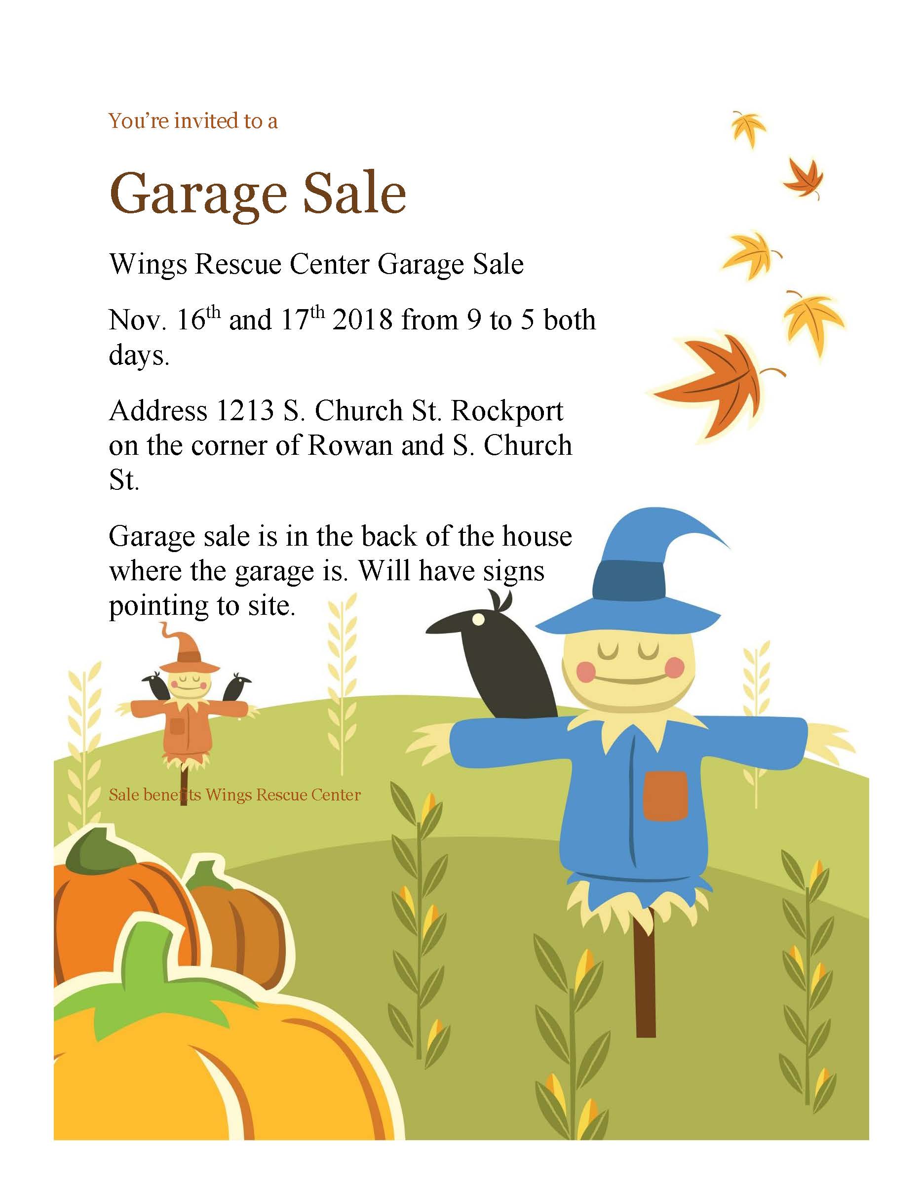 Wings Rescue Garage Sale Nov 16th and 17th