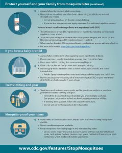 We need to encourage the correct usage of repellents post flood. The Dunks are available at the Environmental Health Office M-F 8am-12, 1-5pm. We also have county employees treating standing water throughout the county and have started spraying for mosquitoes.