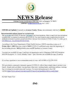 COVID-19 Update: Currently in Aransas County, Texas, our community risk level is HIGH.