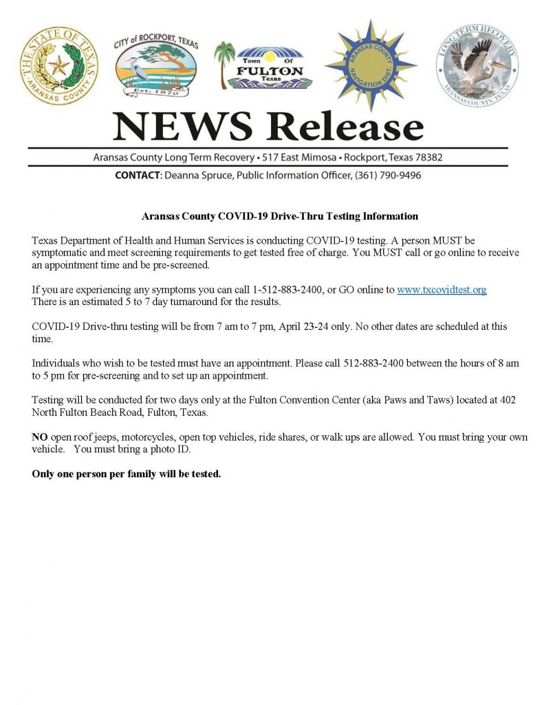 Aransas County COVID-19 Drive Thru Testing