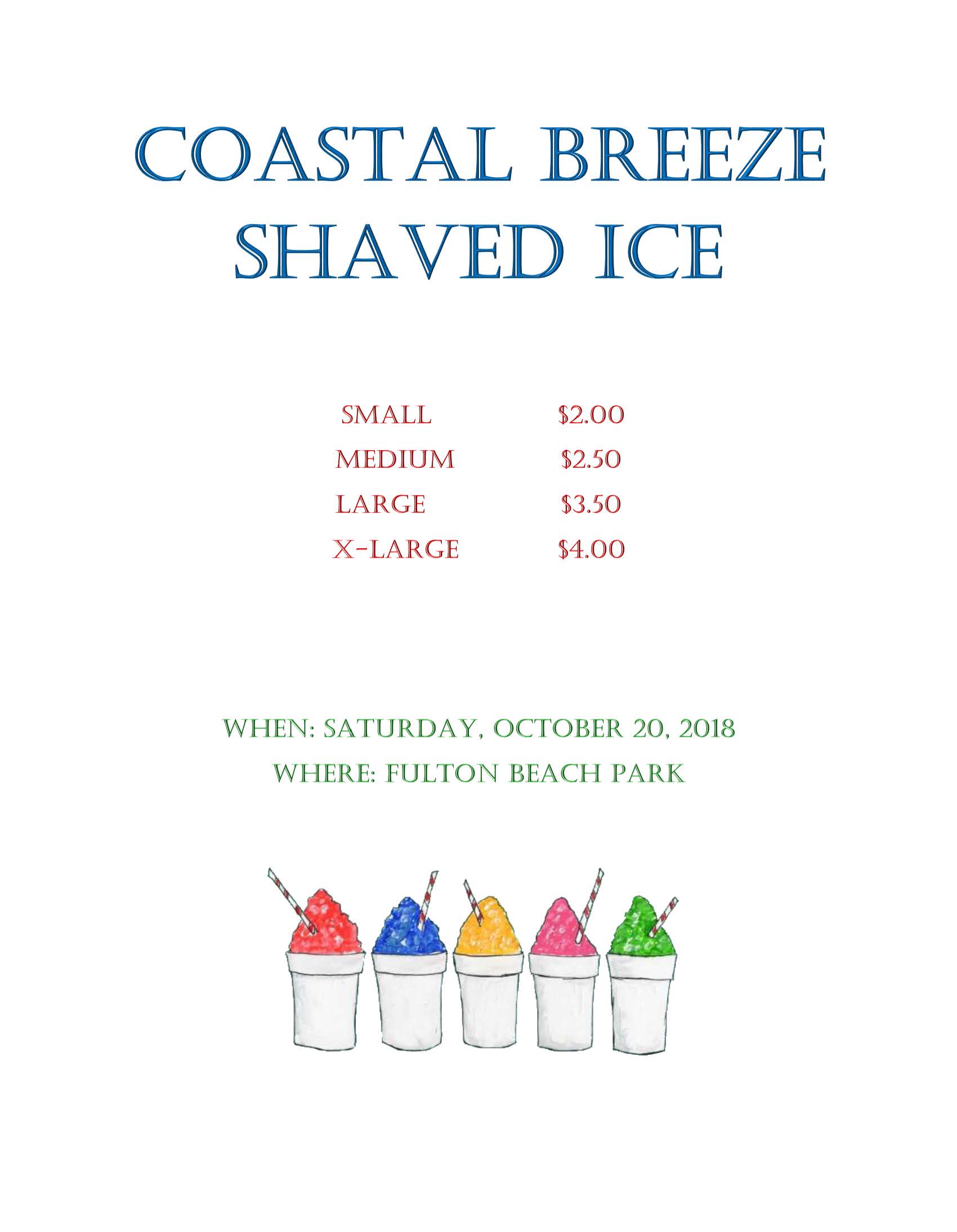 Coastal Breeze Shaved Ice Coming Fulton Beach Park Sat. Oct 20