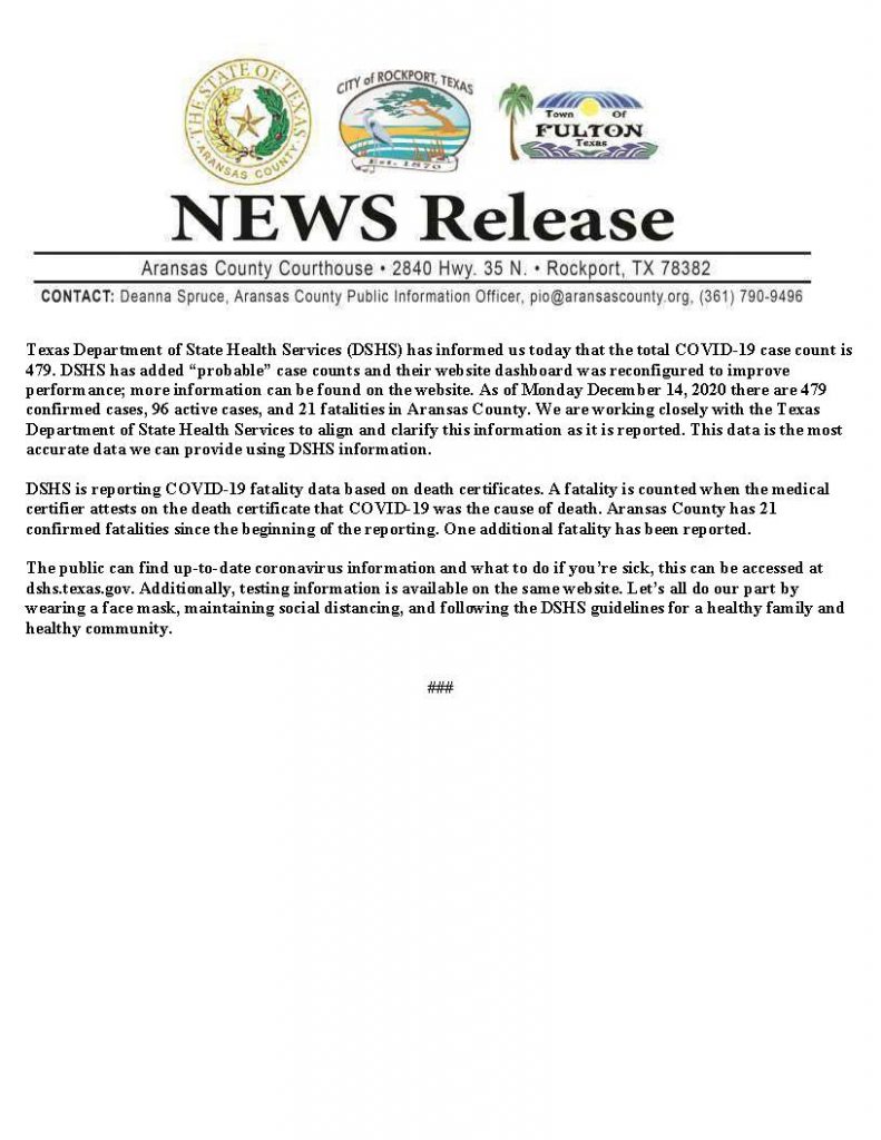 COVID-19 Update Aransas County December 14, 2020
