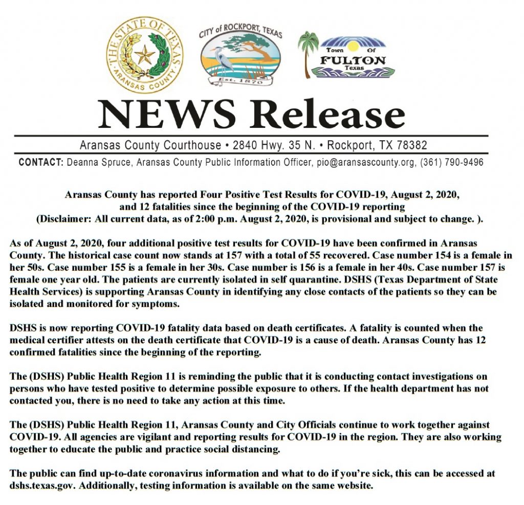 ← Previous Previous post: July 31, 2020 COVID-19 Update Aransas County