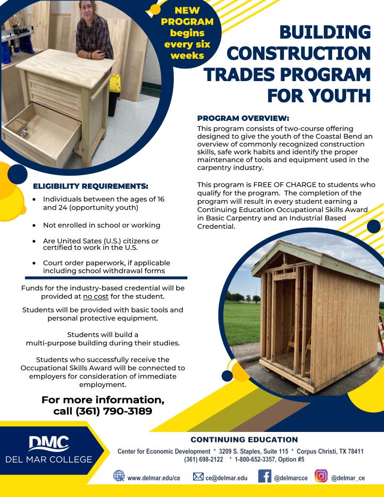 Del Mar College Offers Free Building Construction Trades Program for Youth