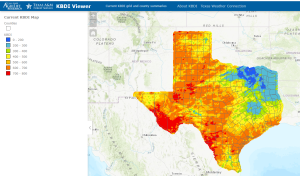The KBDI will show the current drought index for the State of Texas, along with each county. The current index for Aransas County is 634.39. This information is updated every 24hrs at 10am. The information that is obtained from this is 1 part of how we determine burn bans for the county.