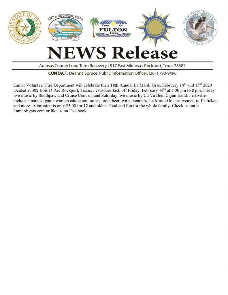 Lamar Volunteer Fire Department 18th Annual La Mardi Gras Feb 14 and 15 2020