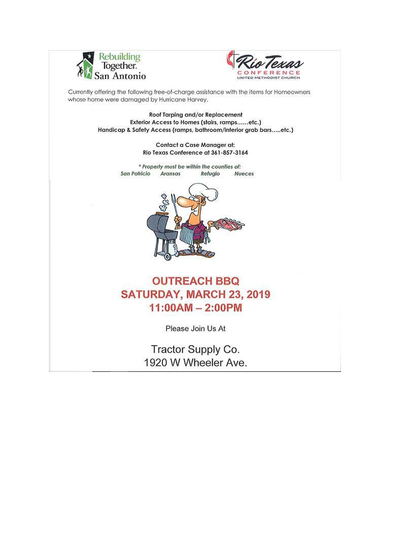 Outreach BBQ Saturday March 23 11am-2pm