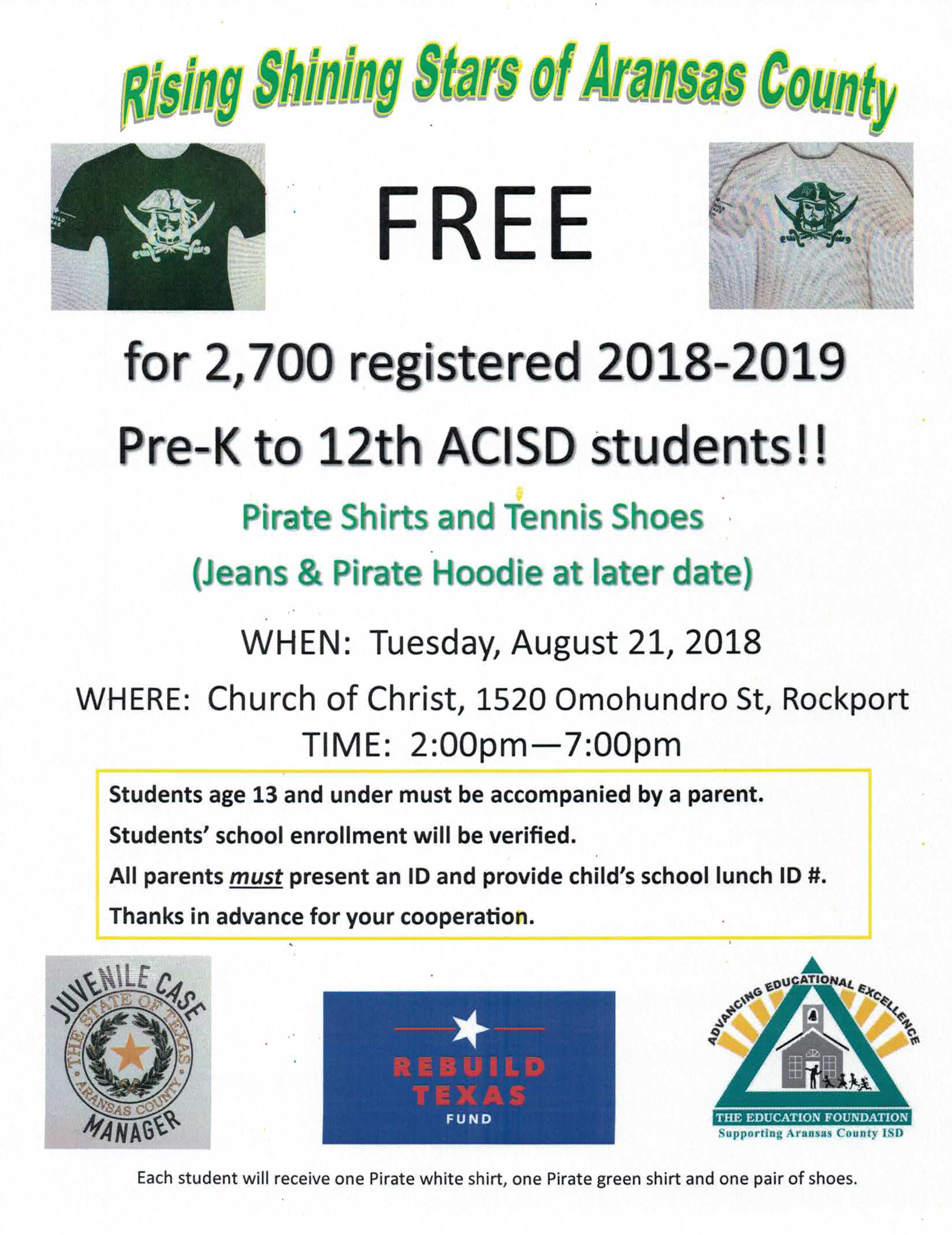 Rising Shining Stars Aransas County Free Pirate Shirts