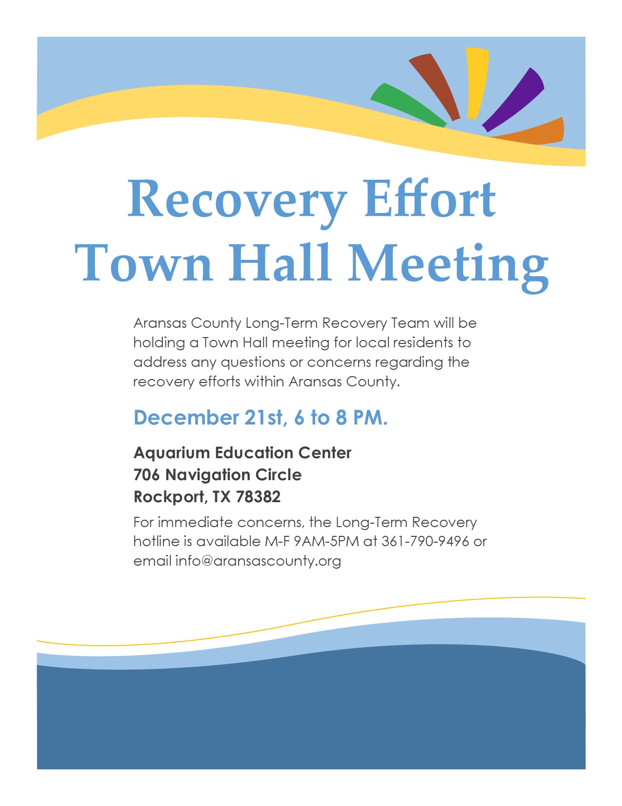Aransas County Long-Term Recovery Team will be holding a Town Hall meeting for local residents to address any questions or concerns regarding the recovery efforts within Aransas County.